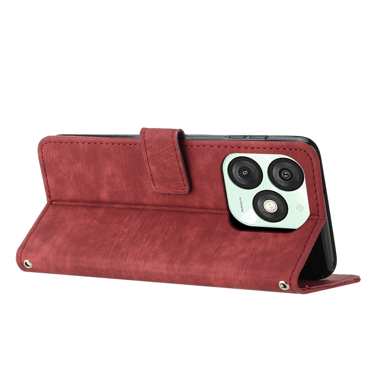 Funda de Cuero Itel A50 con Diseño de Rayas y Cordón (Rojo)
