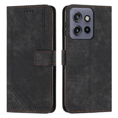 Funda de Cuero Motorola Edge 50 Neo Diseño de Rayas Tacto Agradable (Negro)
