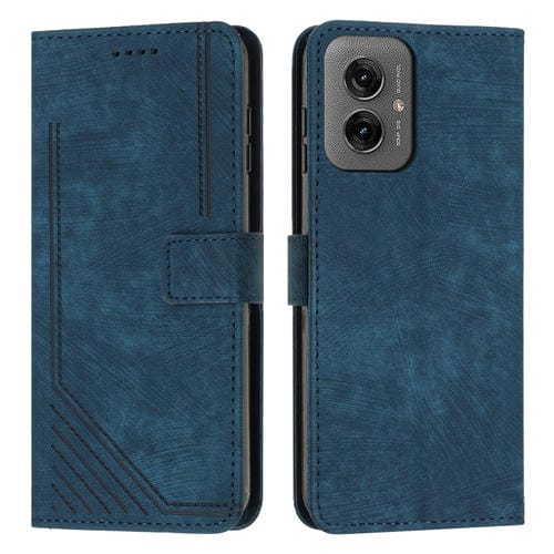 Funda de Cuero Motorola Moto G55 Diseño de Rayas Tacto Agradable (Azul)