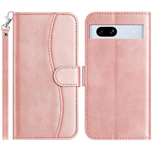 Funda de Cuero con Doble Pliegue en Forma de S para Google Pixel 7A (Oro Rosa)