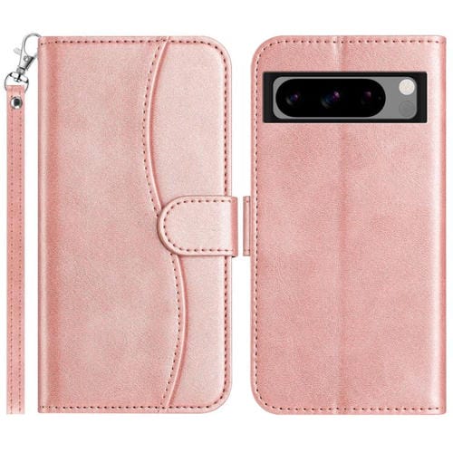 Funda de Cuero con Doble Pliegue en Forma de S para Google Pixel 8 Pro (Oro Rosa)