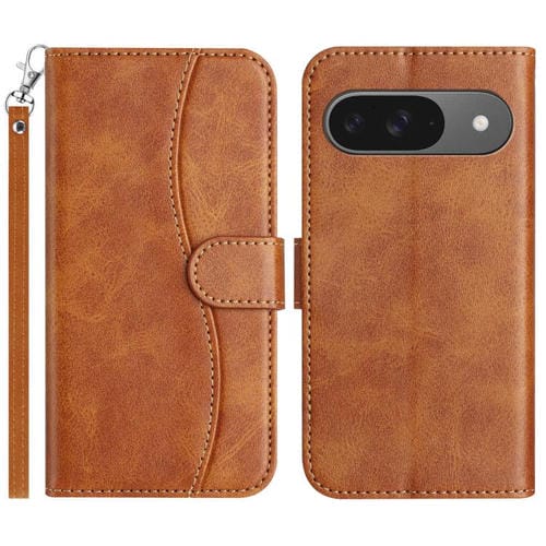 Funda de Cuero con Doble Pliegue en Forma de S para Google Pixel 9 y 9 Pro (Marrón)