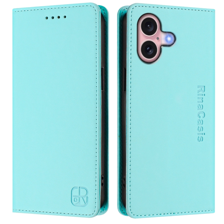 Funda de Cuero para iPhone 16 Rc01 Doble Pliegue Succión Magnética (Verde Menta)