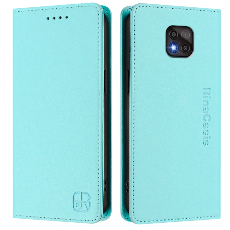 Funda de Cuero Motorola Moto G Power 2021 Rc01 con Doble Pliegue y Succión Magnética (Verde Menta)