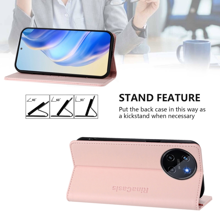 Funda de Cuero con Doble Pliegue y Succión Magnética para Realme 11 4G Global Rc01 (Rosa)