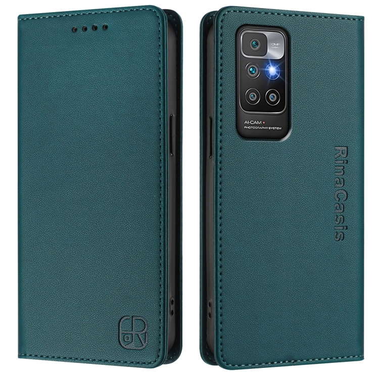 Funda de Cuero con Doble Pliegue y Succión Magnética para Redmi 10 4G 2021/2022 Global Rc01 (Verde Oscuro)
