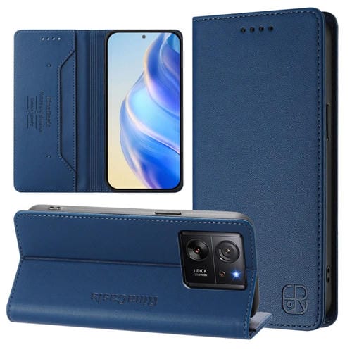 Funda de Cuero con Doble Pliegue y Succión Magnética para Redmi K60 Ultra / Xiaomi 13T / 13T Pro Rc01 (Azul Oscuro)