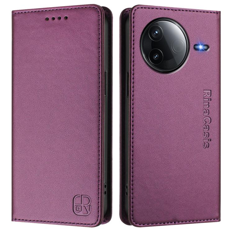 Funda de Cuero con Doble Pliegue y Succión Magnética para Redmi K80/K80 Pro Rc01 (Violeta)