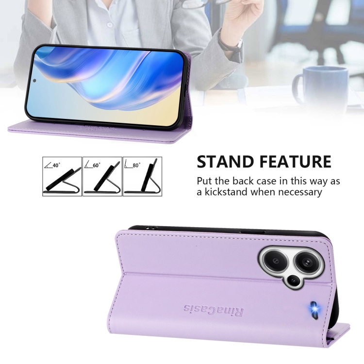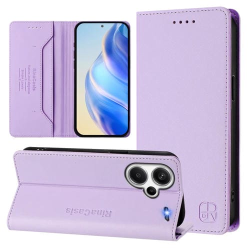 Funda de Cuero con Doble Pliegue y Succión Magnética para Redmi Note 13 Pro+ 5G Global Rc01 (Morado Claro)