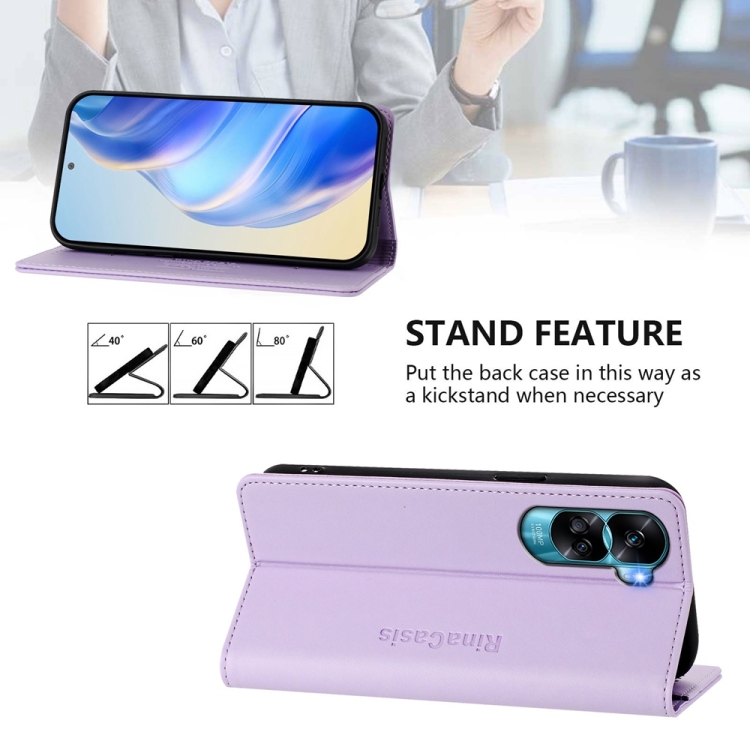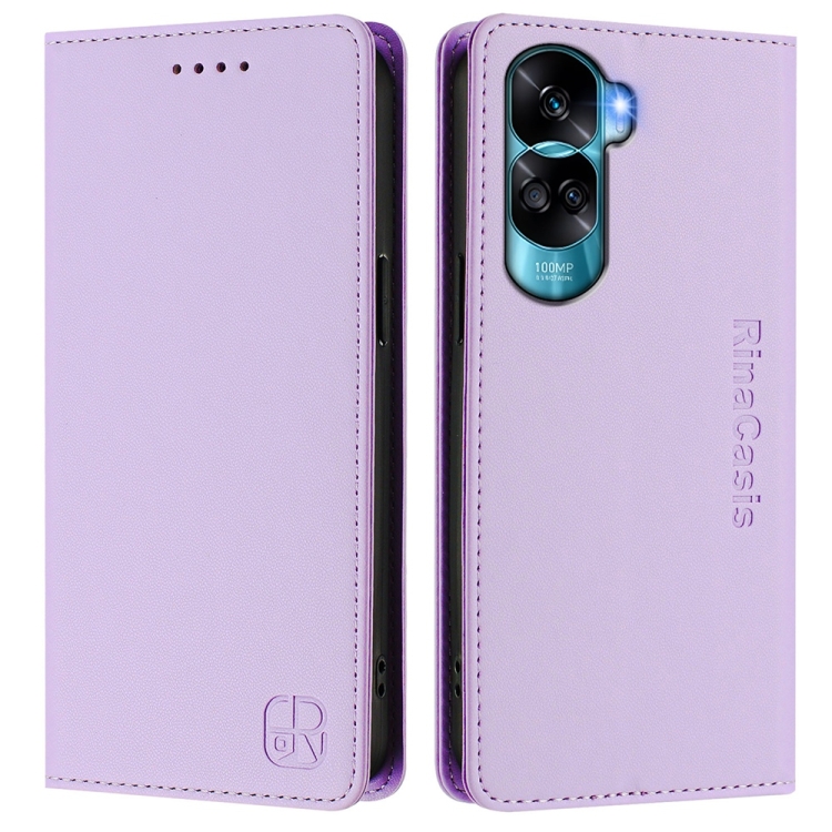 Funda de Cuero con Doble Pliegue y Succión Magnética Rfid para Honor 90 Lite / Honor X50I Rc01 (Morado Claro)