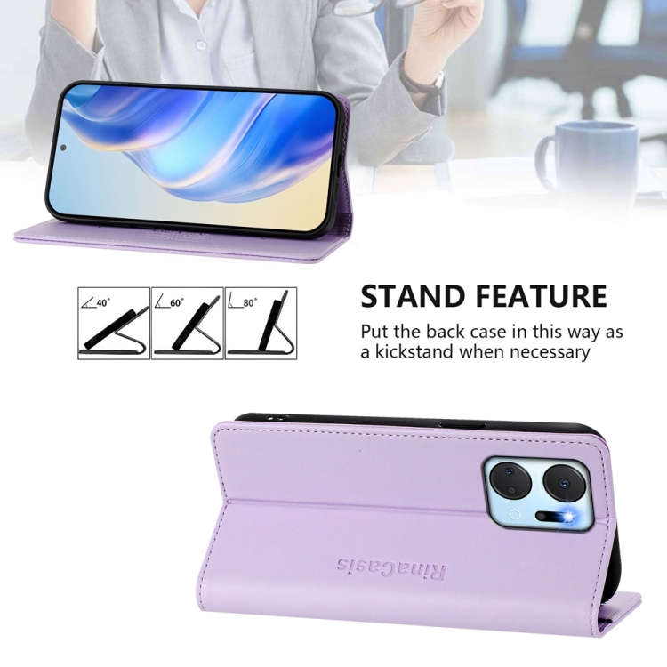 Funda de Cuero con Doble Pliegue y Succión Magnética Rfid para Honor X7A y Honor Play7T Rc01 (Morado Claro)