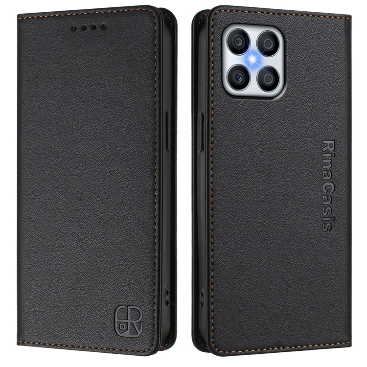 Funda de Cuero con Doble Pliegue y Succión Magnética Rfid para Honor X8 4G / X30I / Play6T Pro Rc01 (Negra)