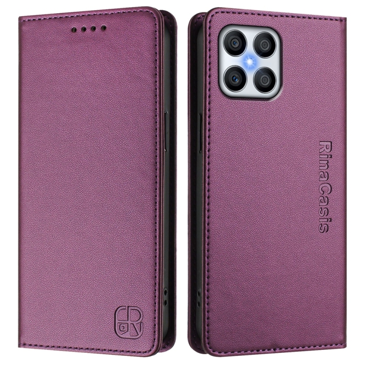 Funda de Cuero con Doble Pliegue y Succión Magnética Rfid para Honor X8 5G / X6 4G / X6S 4G Rc01 (Violeta)