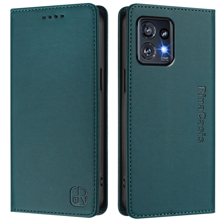 Funda de Cuero Motorola Edge+ 2023 Edge 40 Pro Rc01 Doble Pliegue Succión Magnética (Verde Oscuro)
