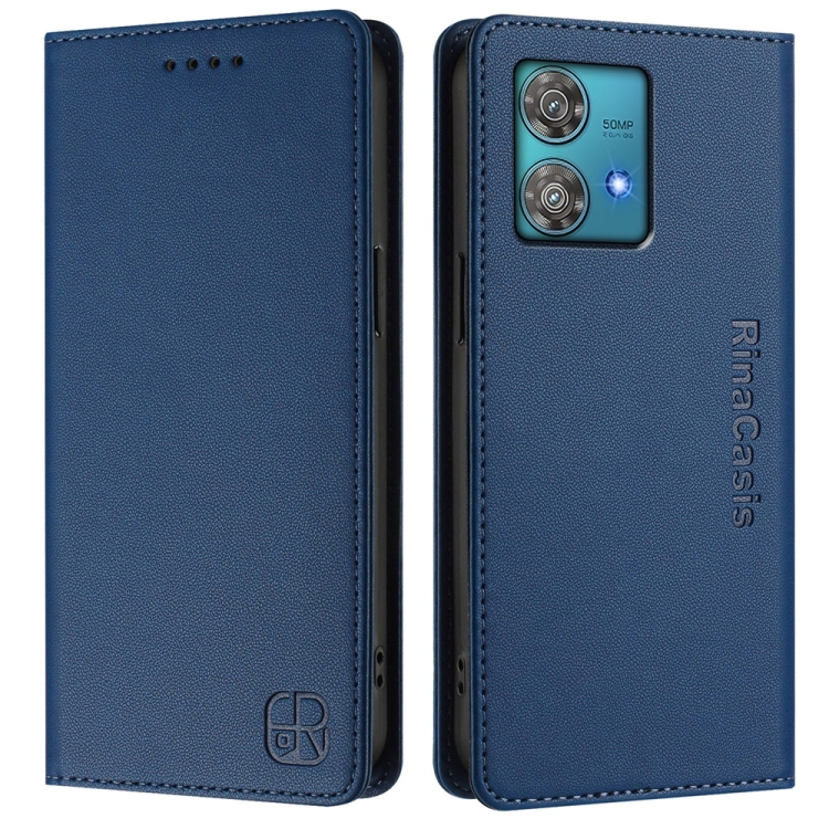 Funda de Cuero Motorola Edge 40 Neo Rc01 con Doble Pliegue y Succión Magnética (Azul Oscuro)