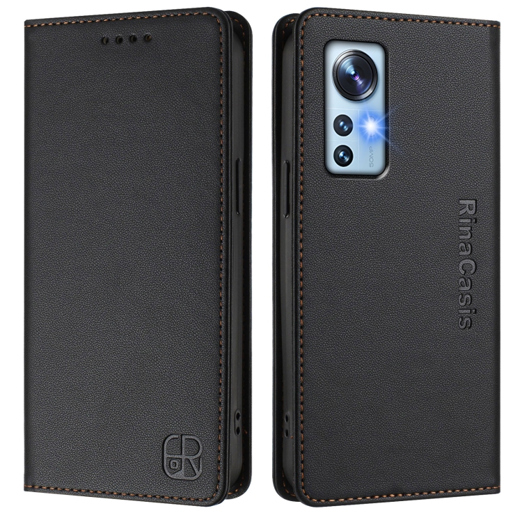 Funda de Cuero con Doble Pliegue y Succión Magnética para Teléfono Xiaomi 12 5G / 12X 5G / 12S 5G Rc01 (Negra)