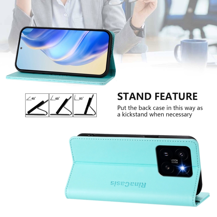 Funda De Cuero Con Doble Pliegue Y Succión Magnética Para Teléfono Xiaomi 14 Pro 5G Rc01 (Verde Menta)