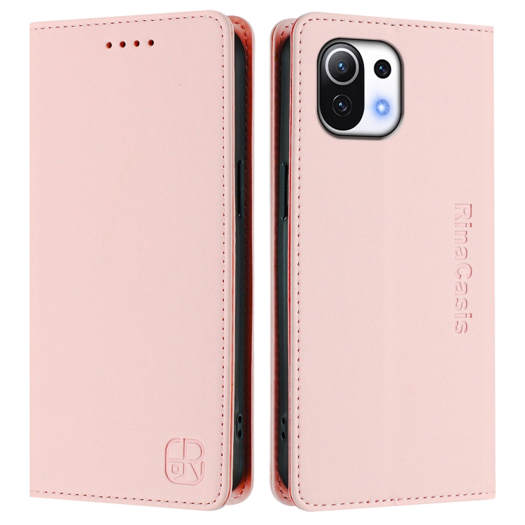 Funda de Cuero con Doble Pliegue y Succión Magnética para Teléfono Xiaomi Mi 11 Lite / Mi 11 Lite 5G Rc01 (Rosa)