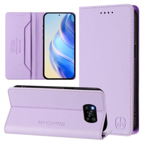 Funda de Cuero con Doble Pliegue y Succión Magnética para Teléfono Xiaomi Poco X3 / X3 Nfc / X3 Pro Rc01 (Morado Claro)