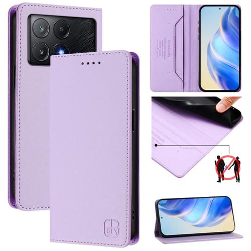 Funda de Cuero con Doble Pliegue y Succión Magnética para Teléfono Xiaomi Poco X6 Pro/Redmi K70E Rc01 (Morado Claro)