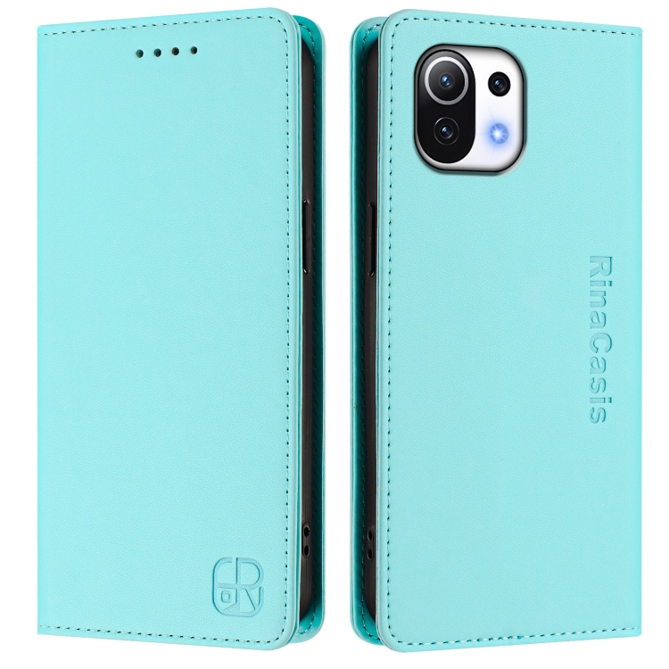 Funda de Cuero con Doble Pliegue y Succión Magnética para Xiaomi Mi 11 Lite / Mi 11 Lite 5G Rc01 (Verde Menta)