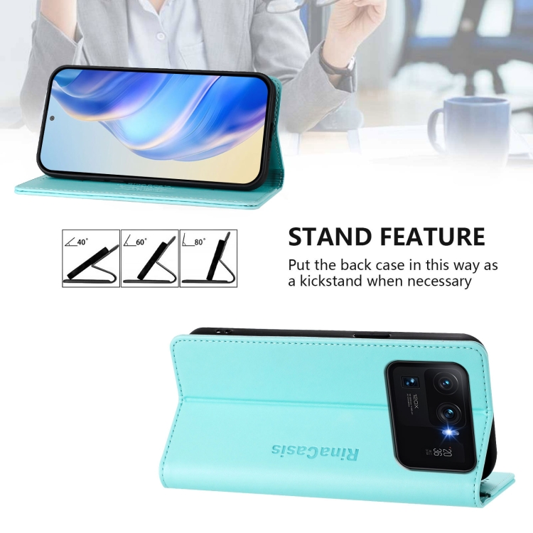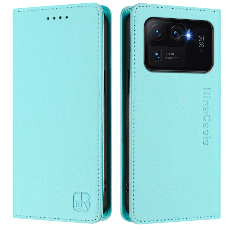 Funda de Cuero con Doble Pliegue y Succión Magnética para Xiaomi Mi 11 Ultra Rc01 (Verde Menta)