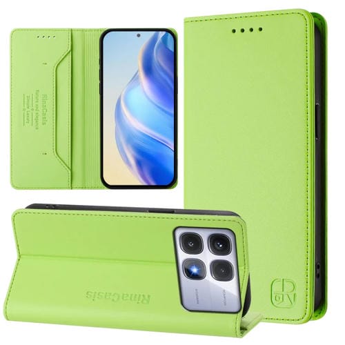 Funda de Cuero con Doble Pliegue y Succión Magnética Rfid para Redmi K70 Ultra 5G Global Rc01 (Verde Hierba)