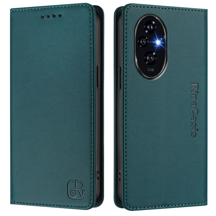 Funda de Cuero Rfid para Honor 200 Rc01 con Doble Pliegue y Succión Magnética (Verde Oscuro)
