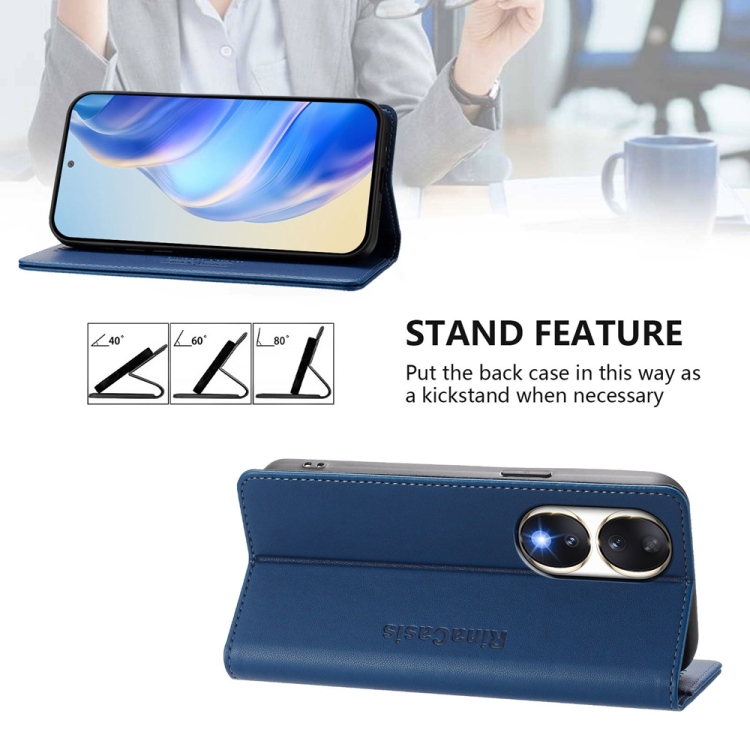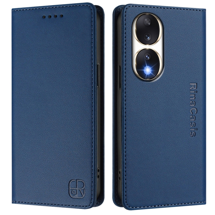 Funda de Cuero Rfid para Honor 90 Rc01 con Doble Pliegue y Succión Magnética (Azul Oscuro)
