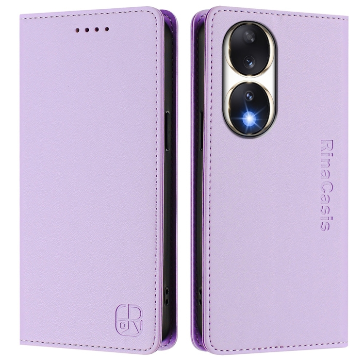 Funda de Cuero Rfid para Honor 90 Rc01 con Doble Pliegue y Succión Magnética (Morado Claro)