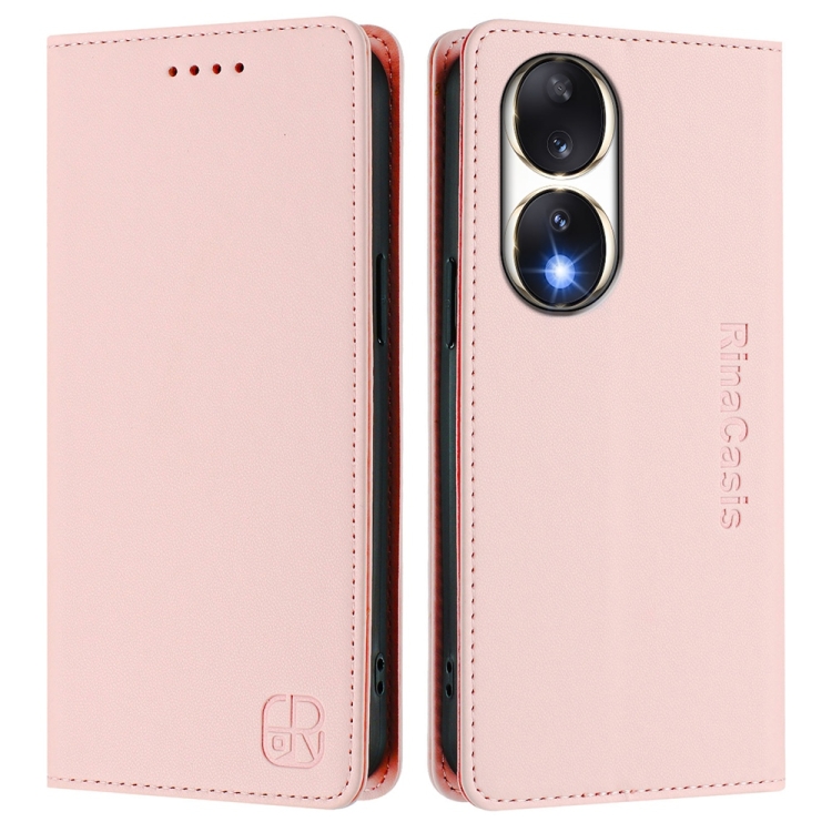 Funda de Cuero con Doble Pliegue y Succión Magnética Rfid para Honor 90 Rc01 (Rosa)