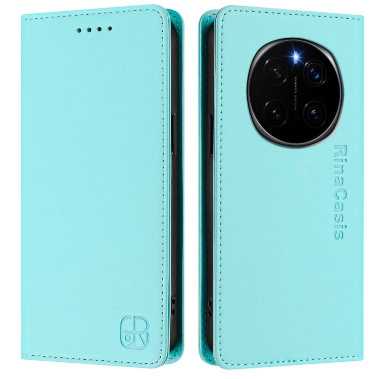 Funda de Cuero Rfid con Doble Pliegue y Succión Magnética para Honor Magic7 Pro Rc01 (Verde Menta)