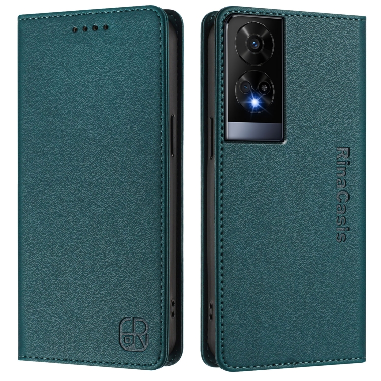 Funda de Cuero para TCL 50 Xe Rc01 con Doble Pliegue y Succión Magnética Rfid (Verde Oscuro)