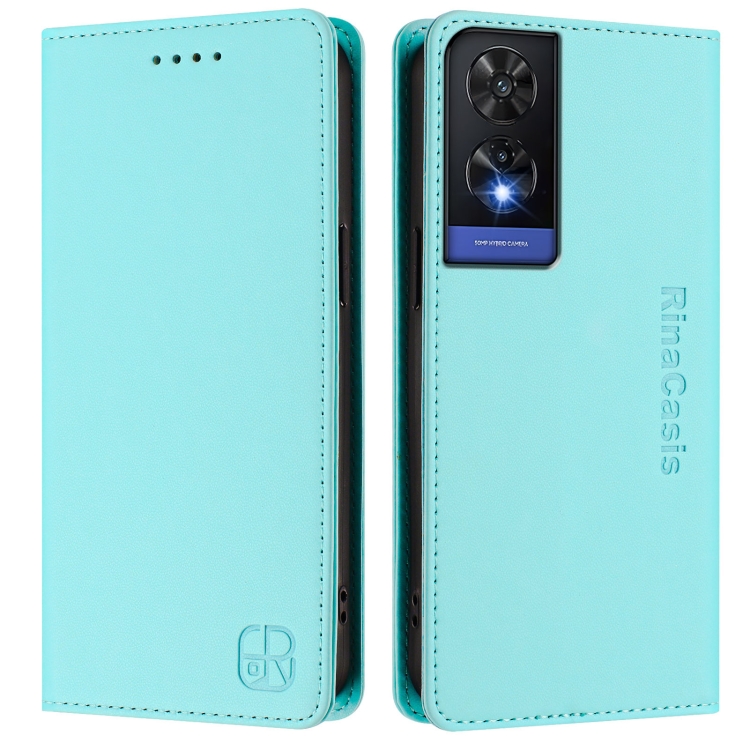 Funda de Cuero para Teléfono TCL 505 Rc01 con Doble Pliegue y Succión Magnética Rfid (Verde Menta)