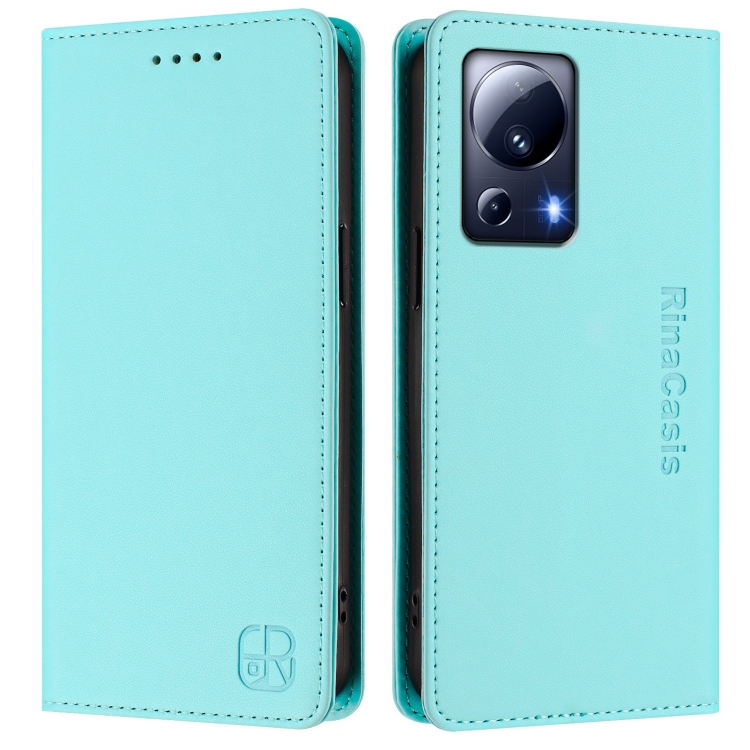 Funda de Cuero con Doble Pliegue y Succión Magnética Rfid para Xiaomi 13 Lite 5G/Civi 2 Rc01 (Verde Menta)