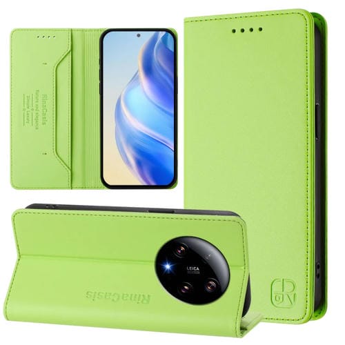 Funda de Cuero con Doble Pliegue y Succión Magnética Rfid para Xiaomi 13 Ultra Rc01 (Verde Hierba)