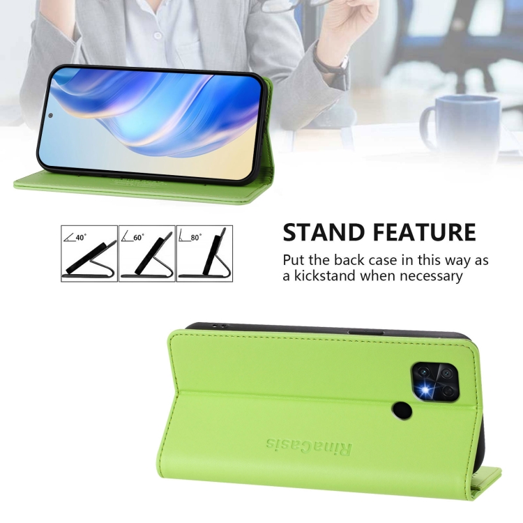 Funda de Cuero con Doble Pliegue y Succión Magnética Rfid para Xiaomi Poco C40 Rc01 (Verde Hierba)