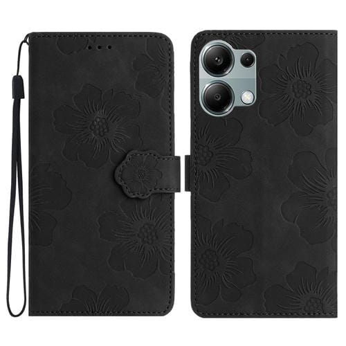 Funda de Cuero con Estampado de Flores En Relieve para Redmi Note 13 Pro 4G (Negra)