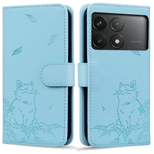 Funda de Cuero con Estampado de Gato para Xiaomi Poco F6 Pro 5G (Azul Cielo)