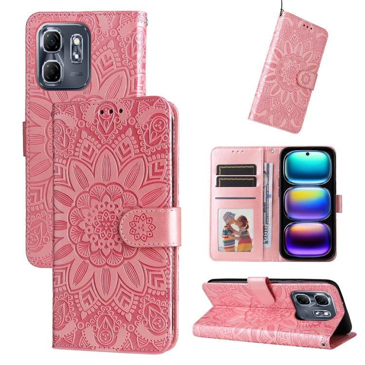 Funda de Cuero con Estampado de Girasoles en Relieve para Infinix Hot 50I/Smart 9 (Rosa)