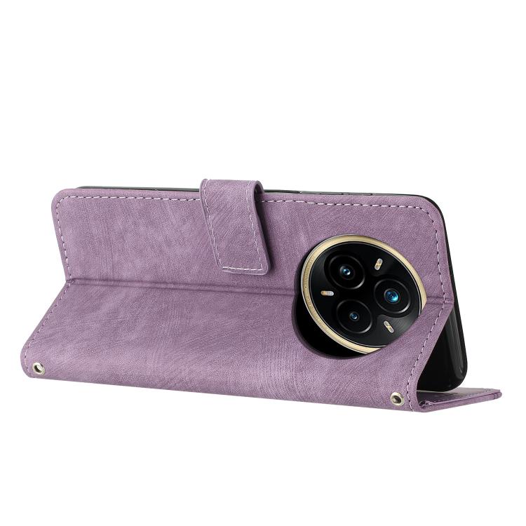 Funda de Cuero con Estampado de Rayas y Cordón para Realme 14 Pro (Morado)