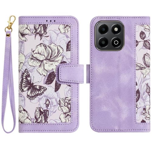 Funda de Cuero Honor 200 con Estampado Floral y Cordón (Morado Claro)