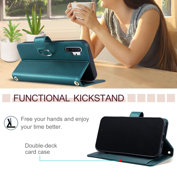 Funda de Cuero Samsung Galaxy Note10+ Forma de Rombo Hebilla Anillo (Verde)