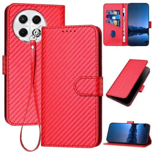 Funda de Cuero con Hebilla de Fibra de Carbono para Tecno Spark 30 Pro 4G Yx0070 con Cordón (Rojo)