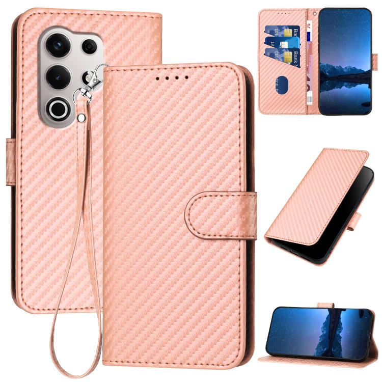 Funda de Cuero con Hebilla de Fibra de Carbono y Cordón para Teléfono Itel S25 Ultra Yx0070 (Rosa)