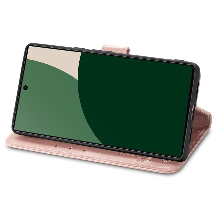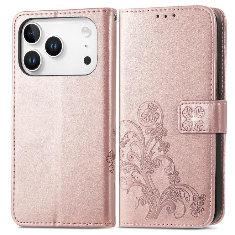 Funda de cuero con hebilla en relieve y cierre de cuatro hojas para iPhone 17 Pro Max (oro rosa)