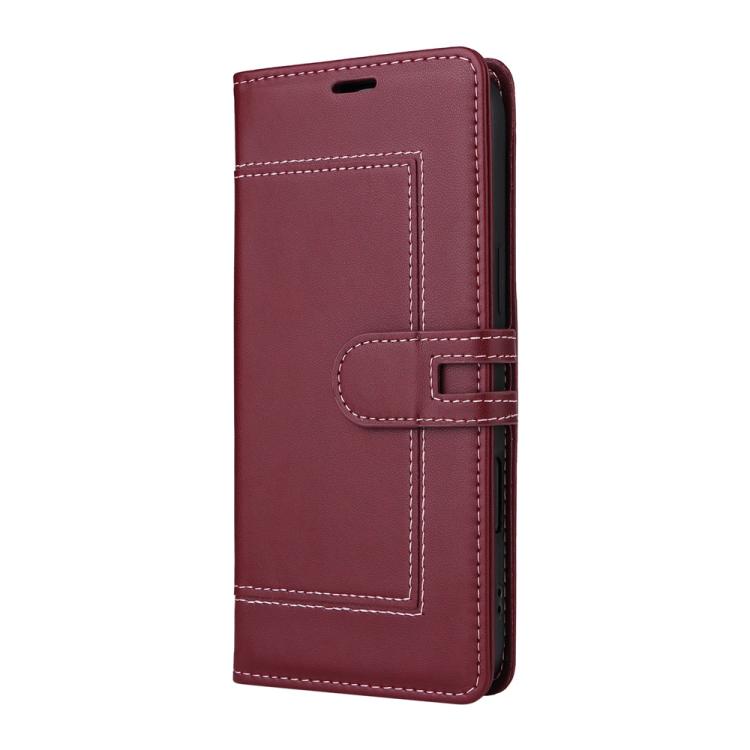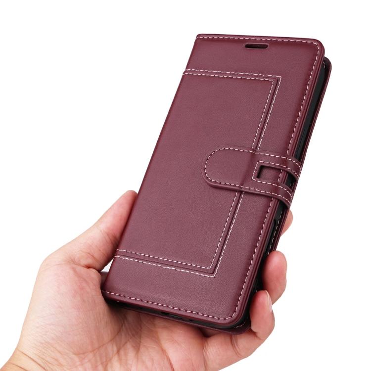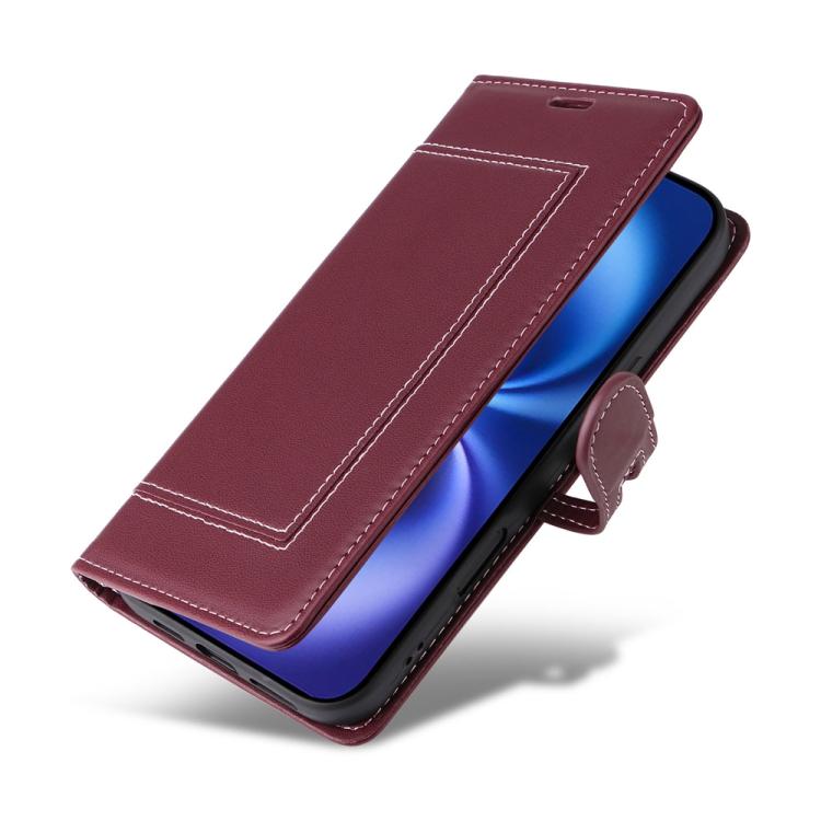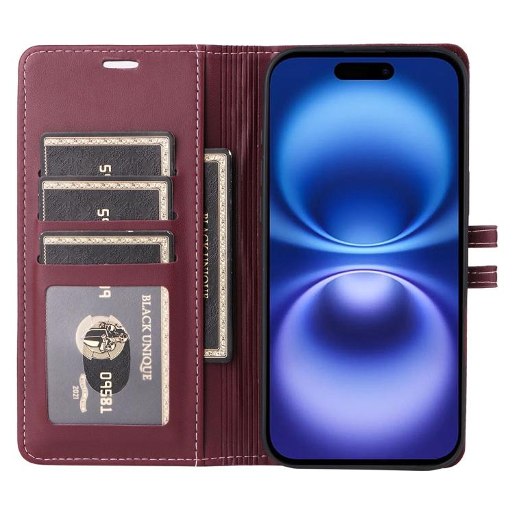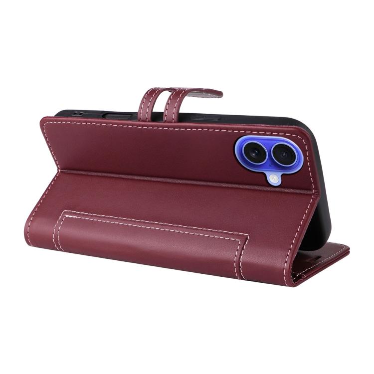 Funda de cuero con hebilla magnética cosida para iPhone 17 (roja)