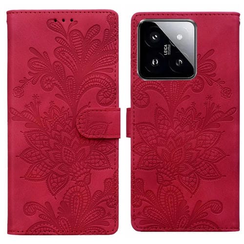 Funda De Cuero Con Hebilla Magnética Y Diseño Floral En Relieve Para Xiaomi 14 (Rojo)