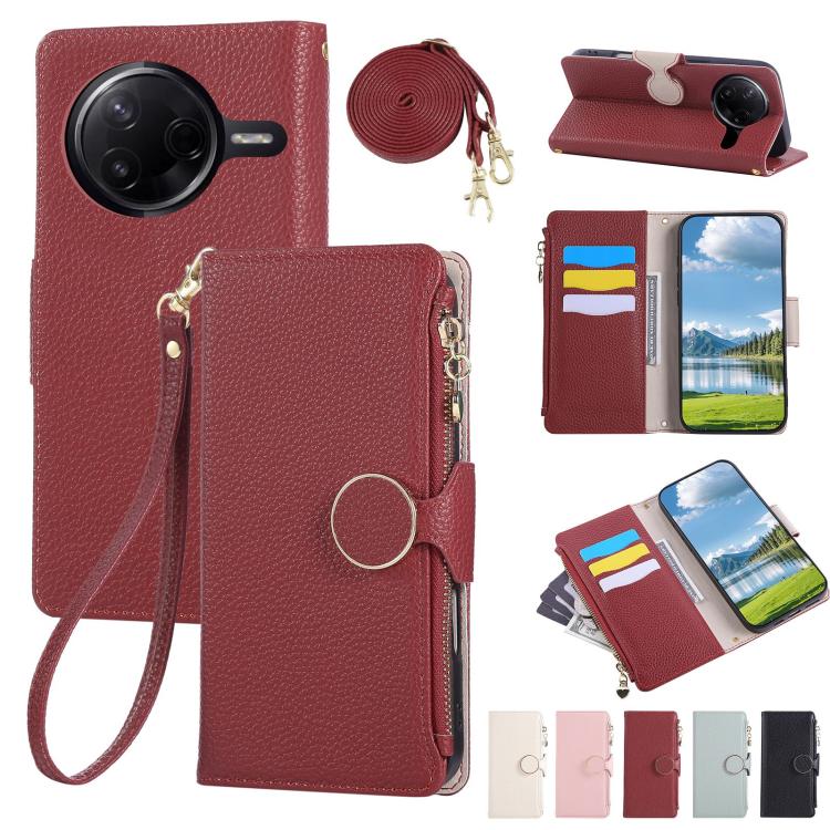 Funda de cuero con hebilla redonda y cremallera para Redmi K80/Poco F7 Pro, con correa cruzada (roja)