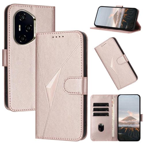 Funda de Cuero con Hebilla y Diseño Triangular para Honor 300 Pro y 300 Ultra (Oro Rosa)